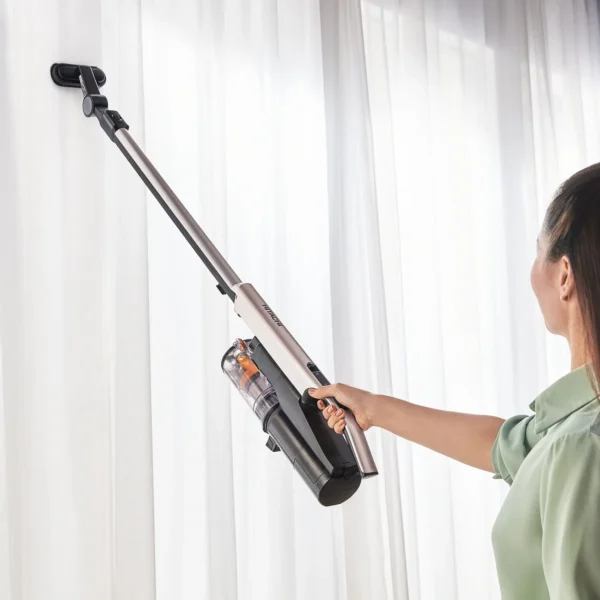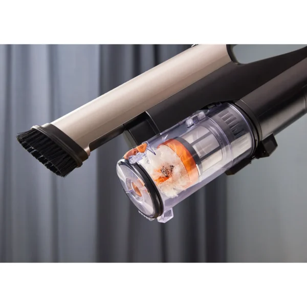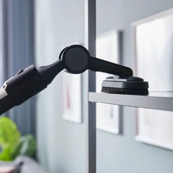 Die Luftansaugleistung dieses wiederaufladbaren Akkusaugers wurde dank technischer Innovation aus Japan nochmal um 20 % gesteigert. Zum Zubehör gehören eine neue Mini-Power-Bürste für die Matratzen- oder Sofareinigung und ein stabiler Ständer zur einfachen Aufbewahrung. Ein Bürstenaufsatz kann 90° abgewinkelt werden und ist daher perfekt geeignet zum Reinigen höher gelegener Flächen, z. B. Regalböden. Zu den weiteren Vorteilen dieses kabellosen Staubsaugers zählen: